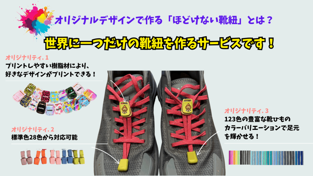 日常生活で必ず使う「靴紐」が便利になるから使ってもらえる。 - メッセージ性がある