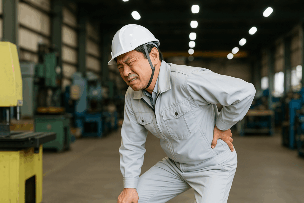 金属加工工場で働くAさんは、長年の立ち仕事で慢性的な腰痛に悩まされていました。湿布や痛み止めでごまかしていましたが、作業スピードが落ち、繁忙期には欠勤が増えることも…。
