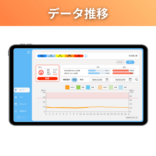 作業環境の温度・湿度の把握 危険時の作業中止や休憩指示